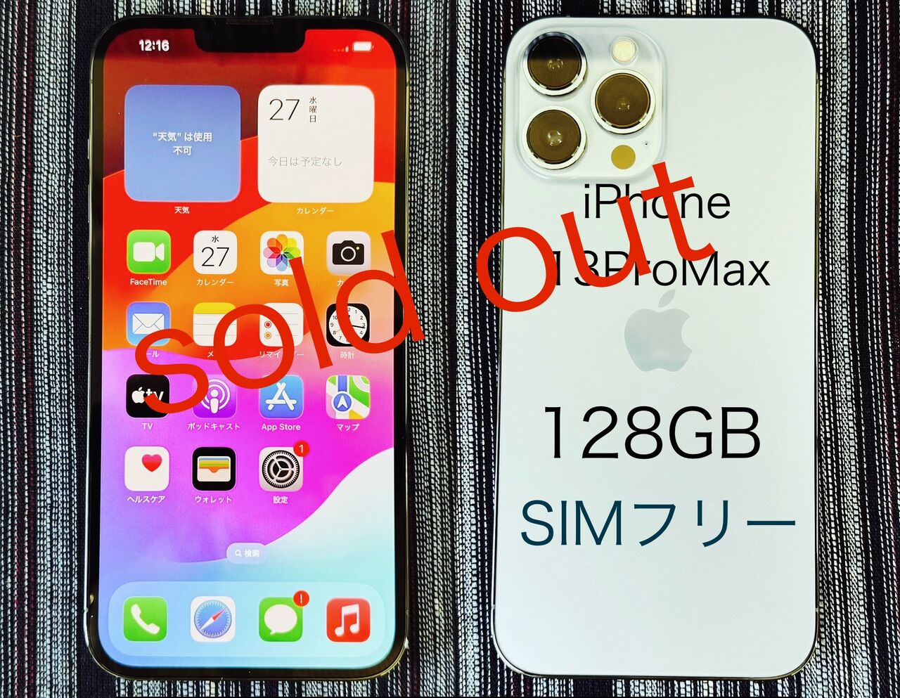 iPhone12ProMax・256GB・SIMフリーの端末です。