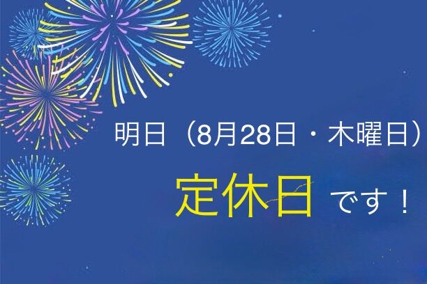 明日(8月28日・木曜日)は定休日とさせて頂いております。