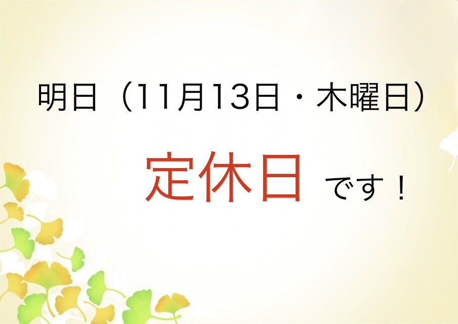 明日(11月13日・木曜日)は定休日とさせて頂いております。
