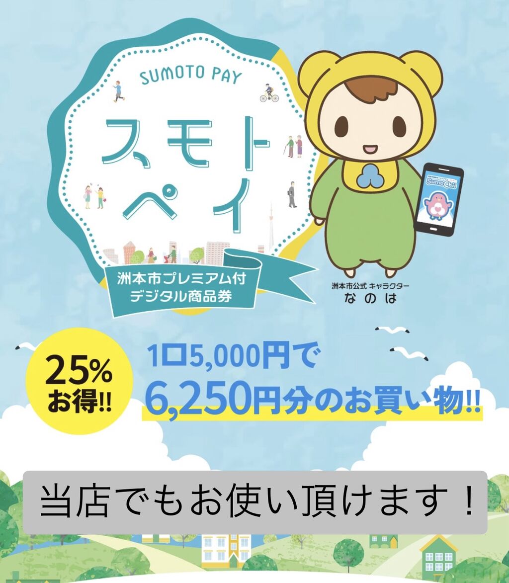 洲本市プレミアム付デジタル商品券・スモトペイ(スモチー)当店でもご利用頂けます。
