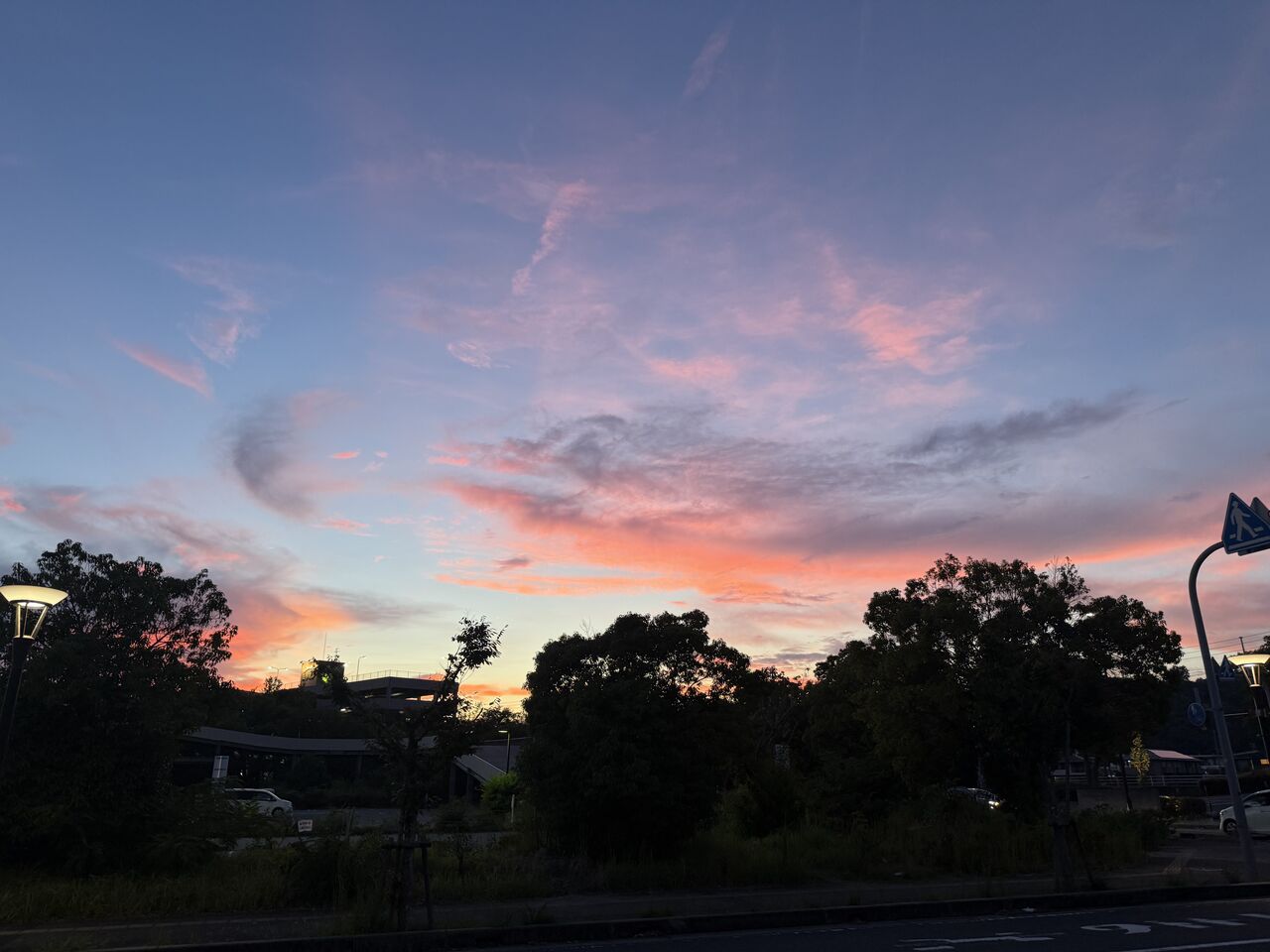 今日は雲が多く出てきたので、そんなに綺麗な空にはならなかったけど、昨日は綺麗な夕暮れ空でした。