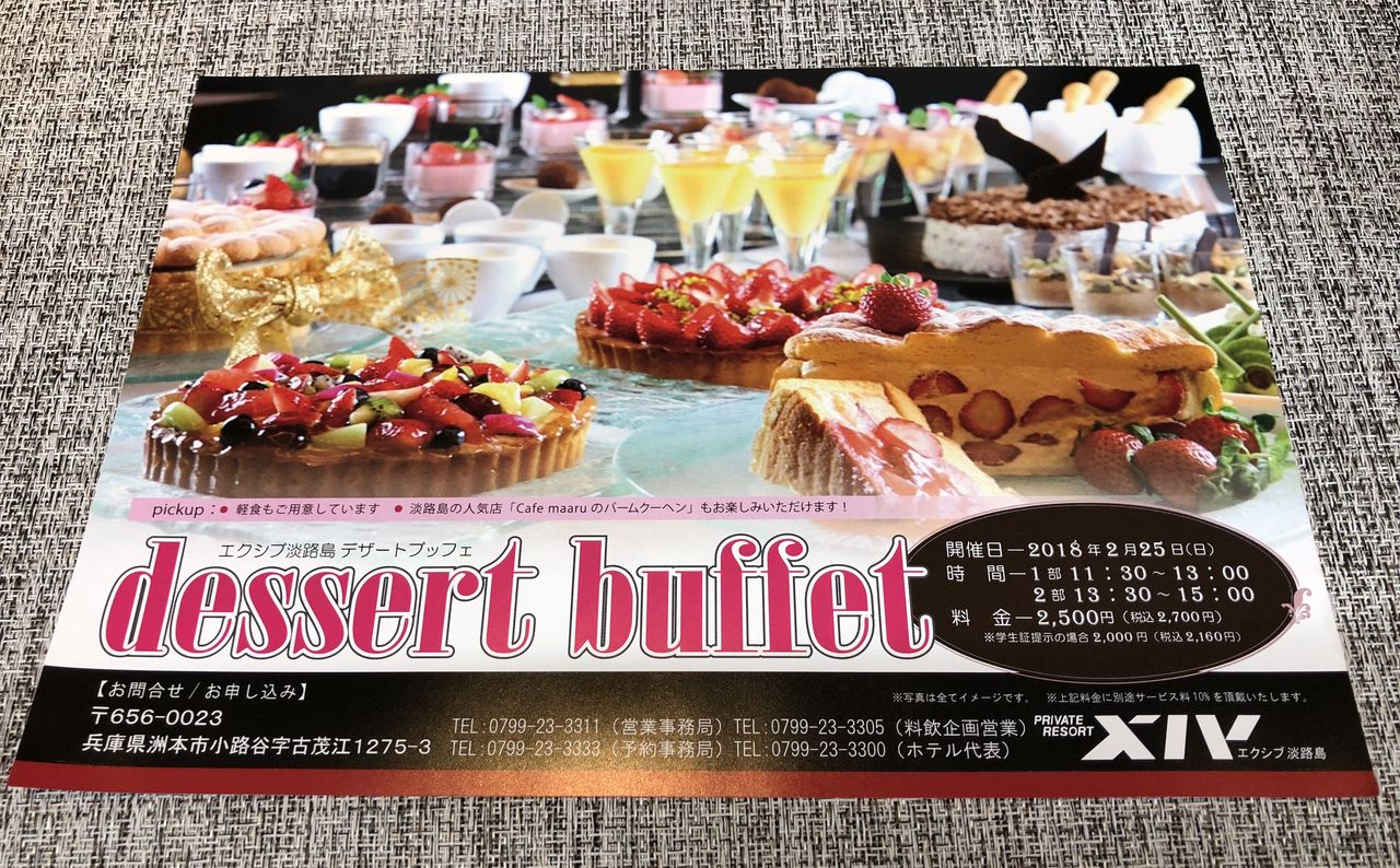 来月2月25日にエクシブ淡路島でデザートブッフェが開催されるそうです!