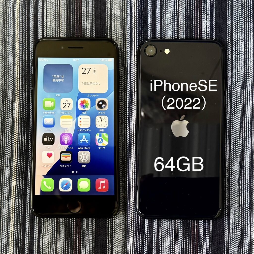 iPhoneSE(2022)64GB・ミッドナイトカラーの端末です。